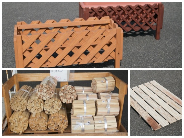 防腐処理済の高耐久ウッドデッキ材、すのこ、木製ラック、燃料用薪等も提供しております。